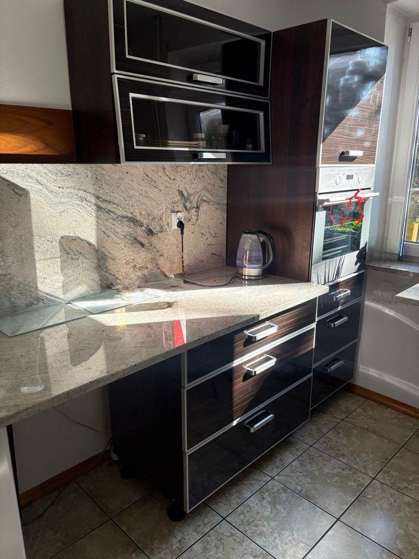 Elegancko zaprojektowana kuchnia z naturalnego kamienia, idealny do różnorodnych stylów aranżacji wnętrz.