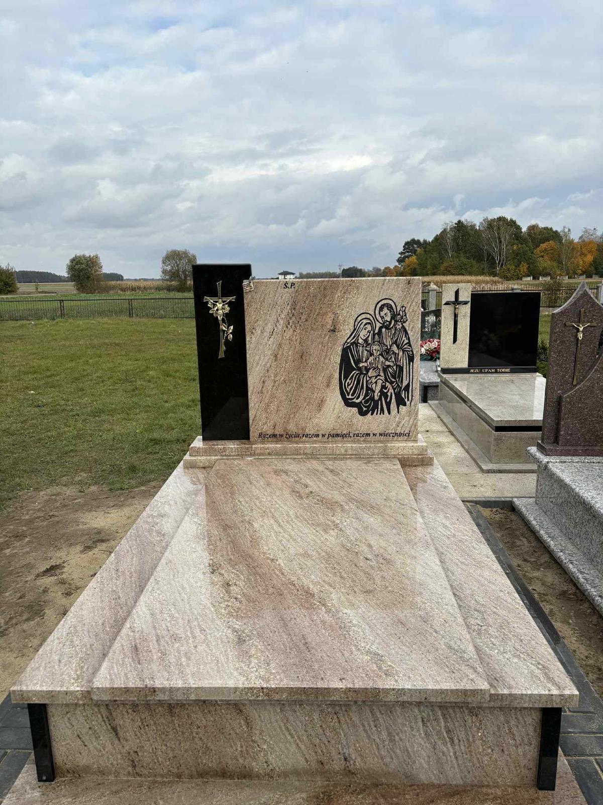 Grób stworzony z kamienia naturalnego, który można spersonalizować, dodając własne napisy.